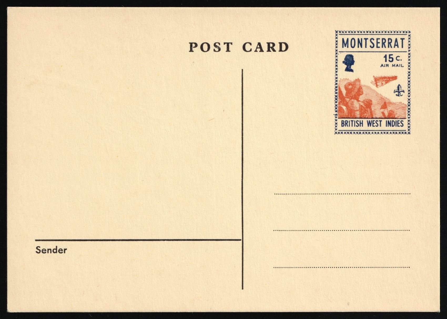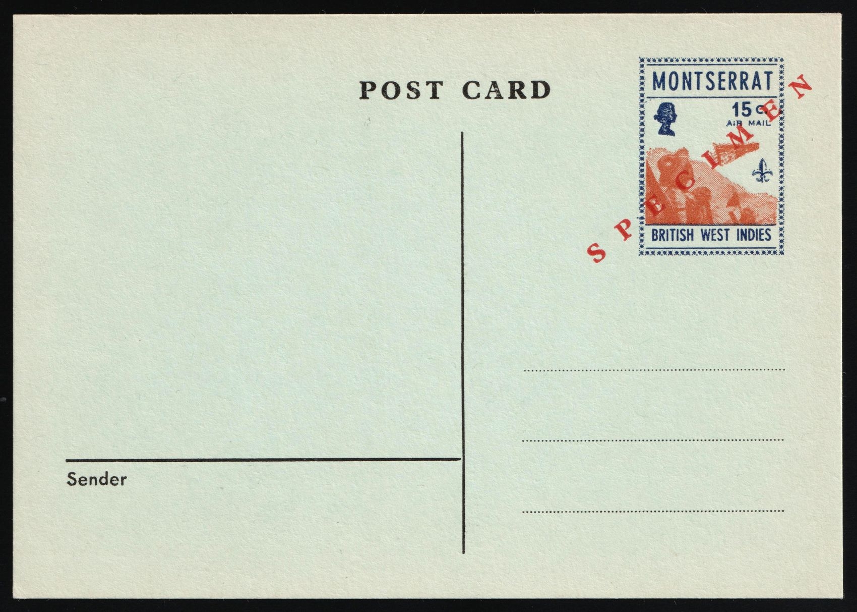 2135 Mint imageMontserrat, British Overseas Territories, British Commonwealth, Postal Stationery Postcard, Airmail, Specimen, Mint, additionally franked with 15c. Mint (Image 1)