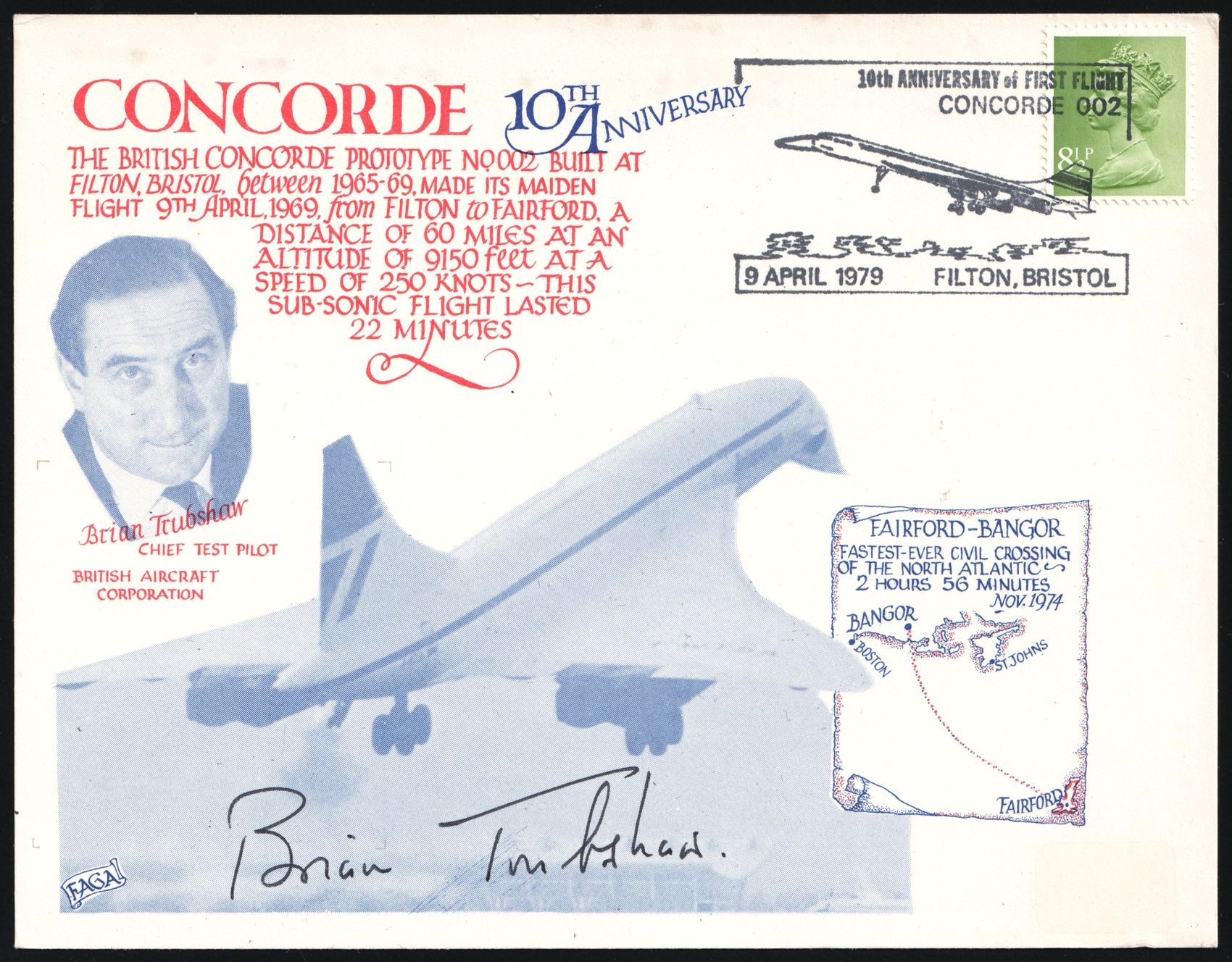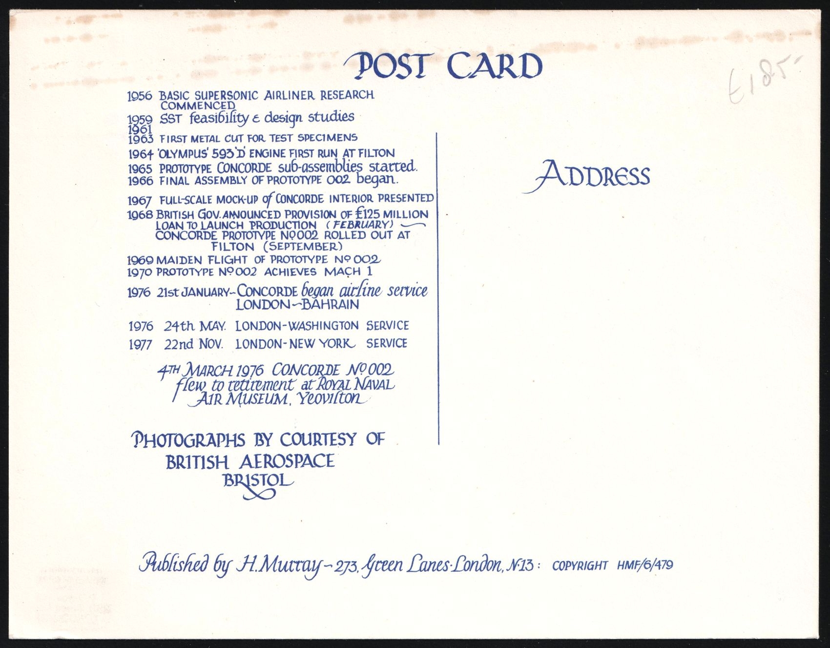 2114 image1979 (9 Apr) Great Britain, Postcard franked with 8.5d with Commemorative Cancellation '10th Anniversary of First Flight Concorde 002'. Commemorative Postmark