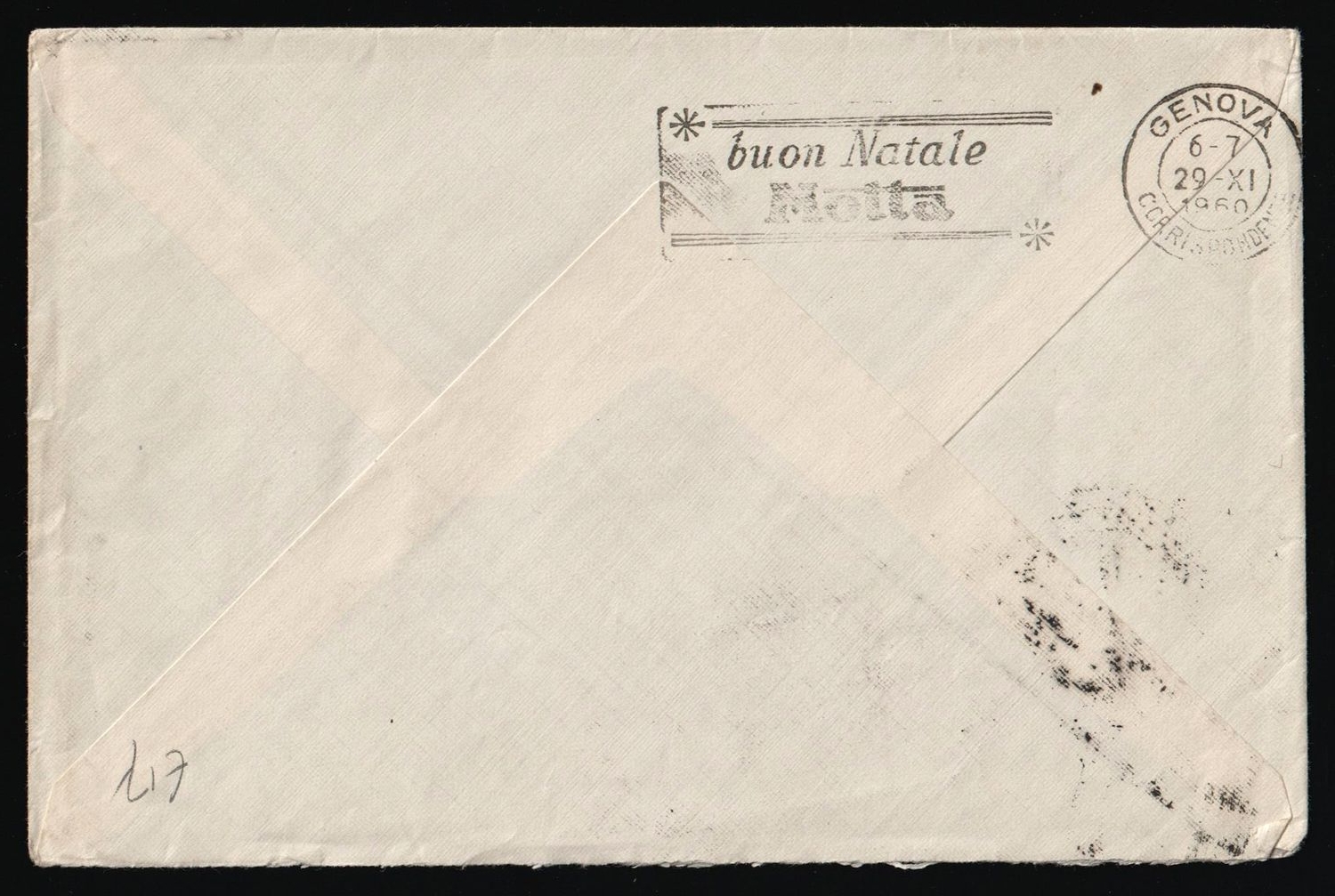 2132 image1960 Kuwait, British Protectorate, Airmail Cover from Kuwait via Shell Tankers London to Genova (Italy) franked with 1r, 20 with Black Handstamp 'Merry Christmas'. | Michel 136, 139 (Image 1) (Image 2)