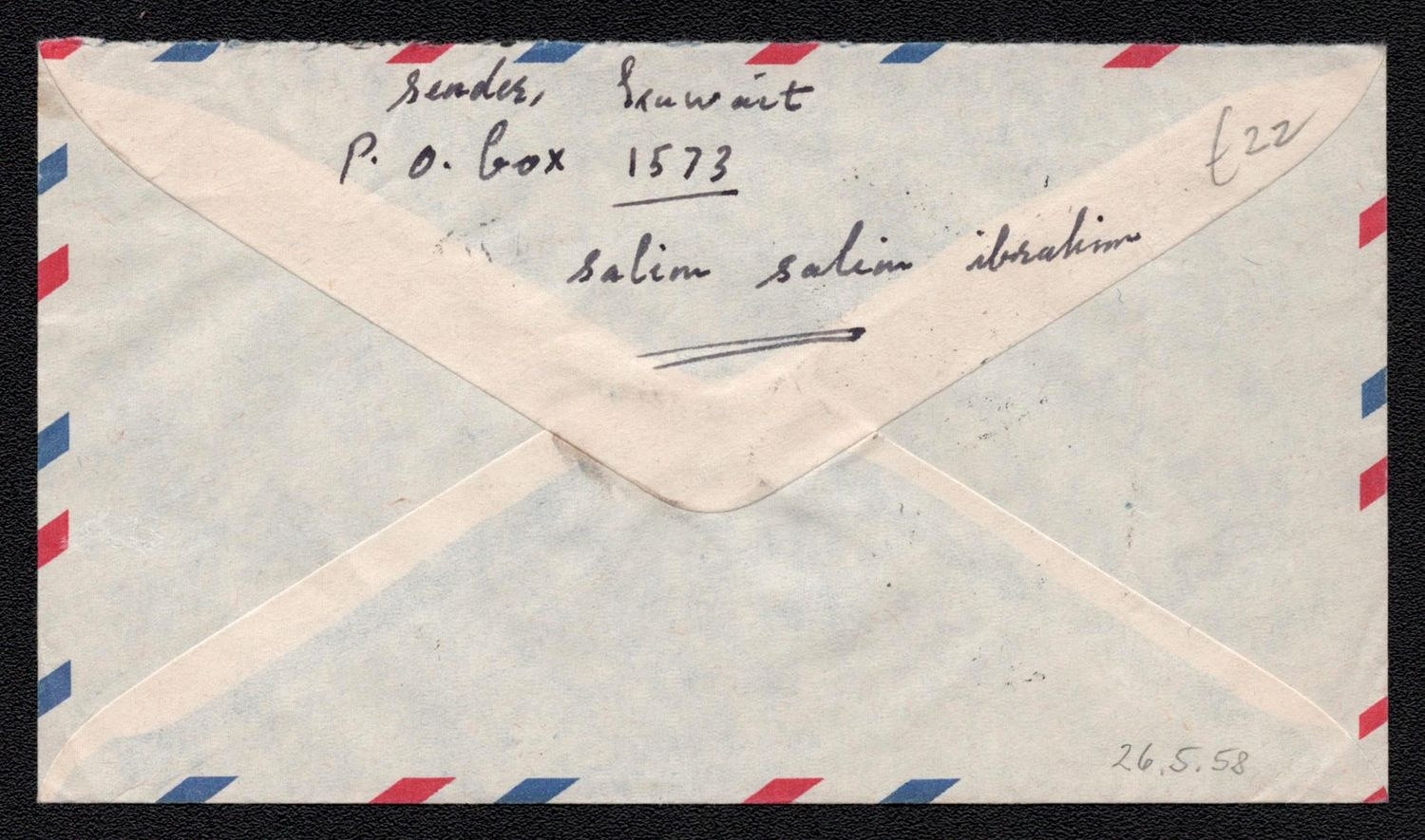 2130 image1958 26 (May) Kuwait, British Protectorate, Airmail Cover from Kuwait to Regensburg (Germany), franked with 6a on 6p. | Michel 101 (Image 1) (Image 2)