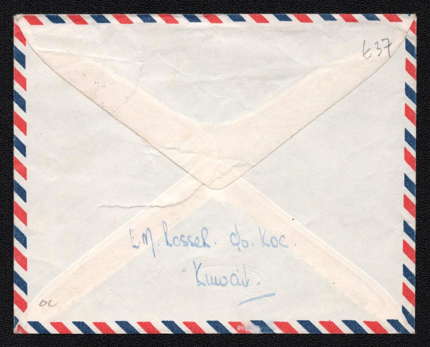 2126 image1956 5 (Mar) Kuwait, British Protectorate, Airmail Cover from Kuwait to Karlsruhe (Germany), franked with 6a on 6p. | Michel 101 (Image 1) (Image 2)