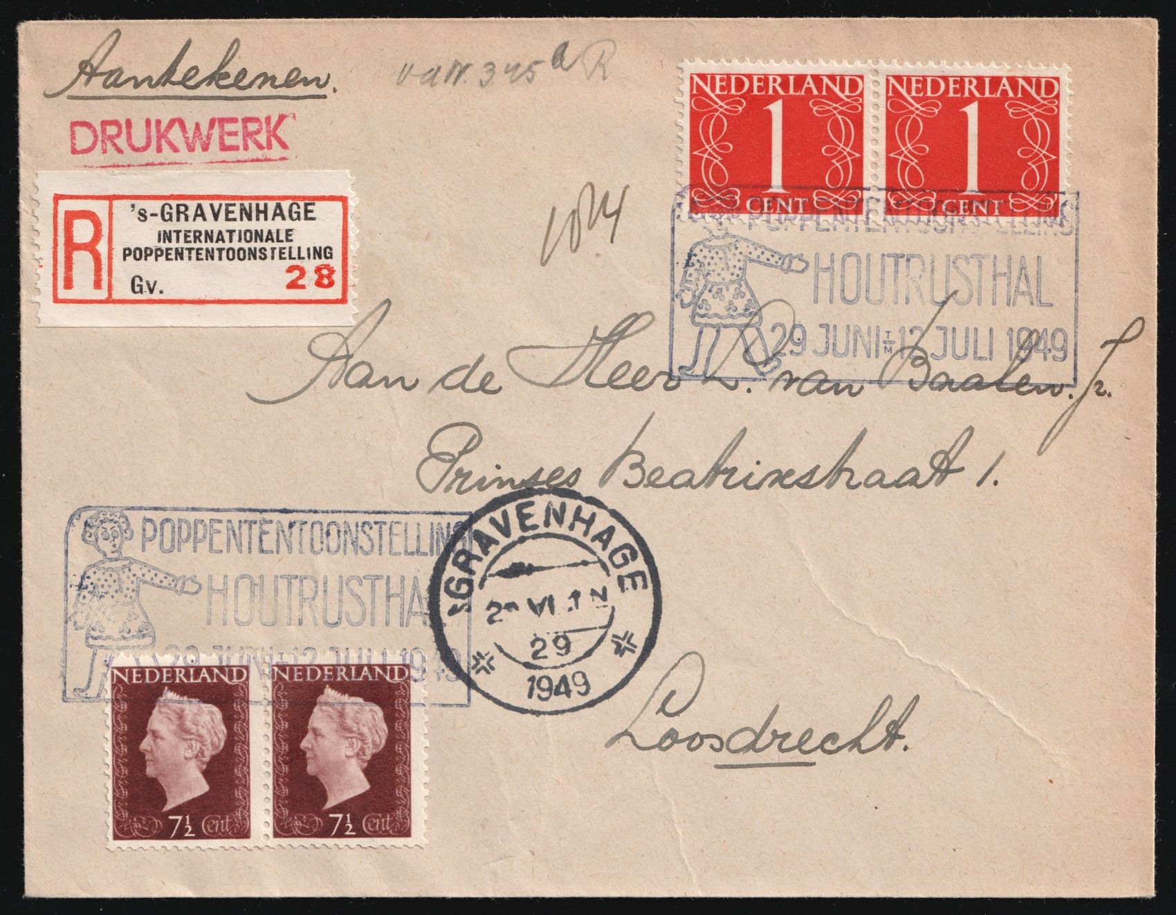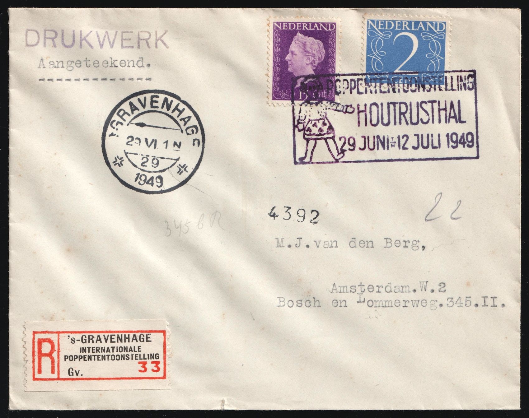 1949 (9 Jul) Netherlands, 'International Puppet Exhibition', Registered Cover from Hague to Assen franked with