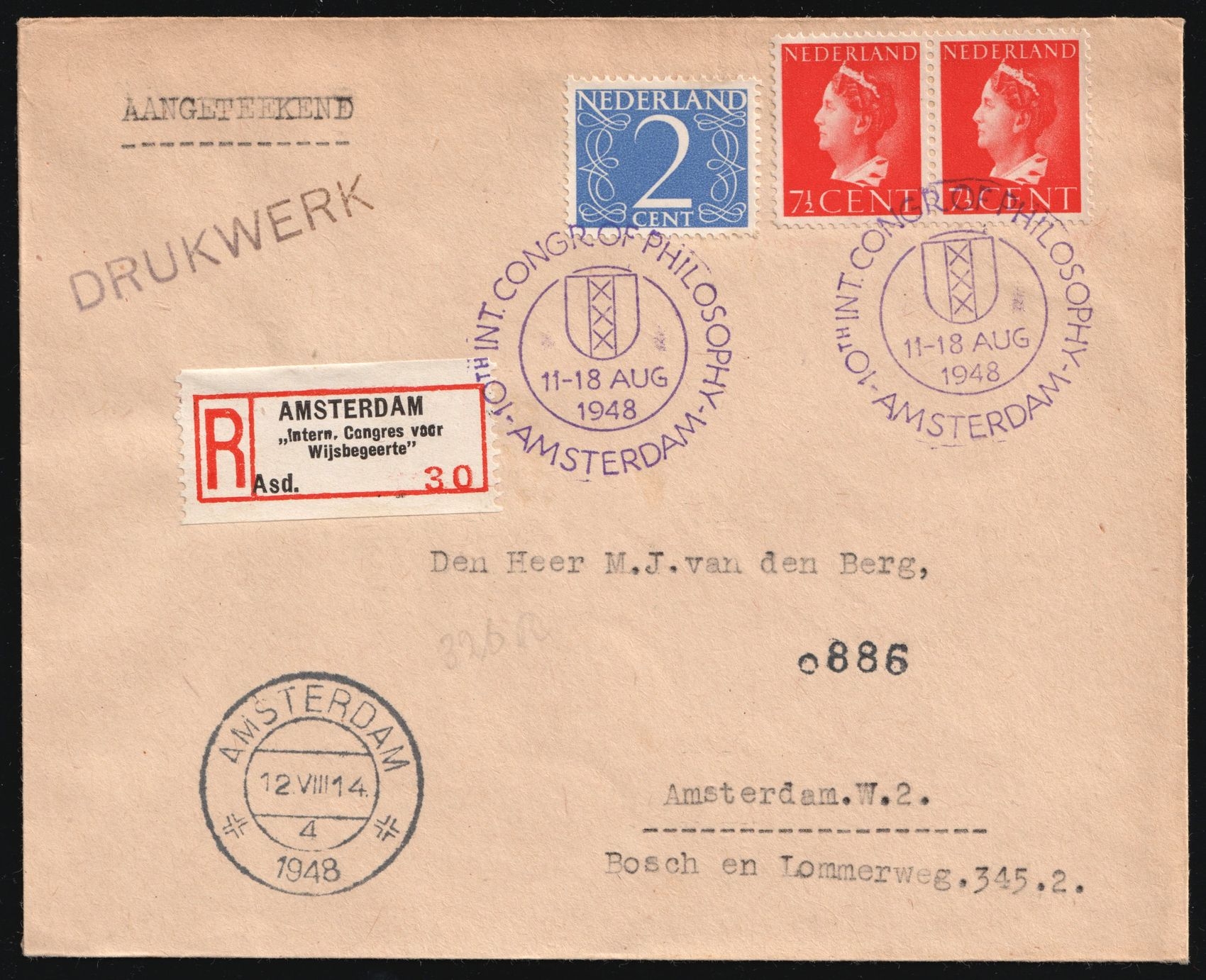 1948 (16 Aug) Netherlands, 'International Congress of Philosophy', Registered Cover from Amsterdam to Hague