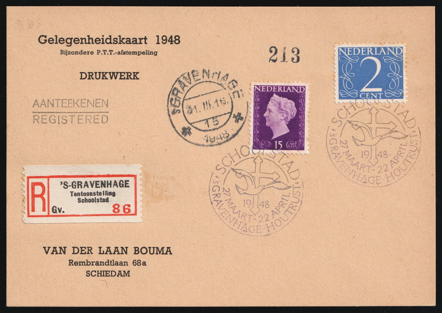 1948 (31 Mar) Netherlands, 'School City Exhibition', Registered Postcard from Hague to Schiedam franked with