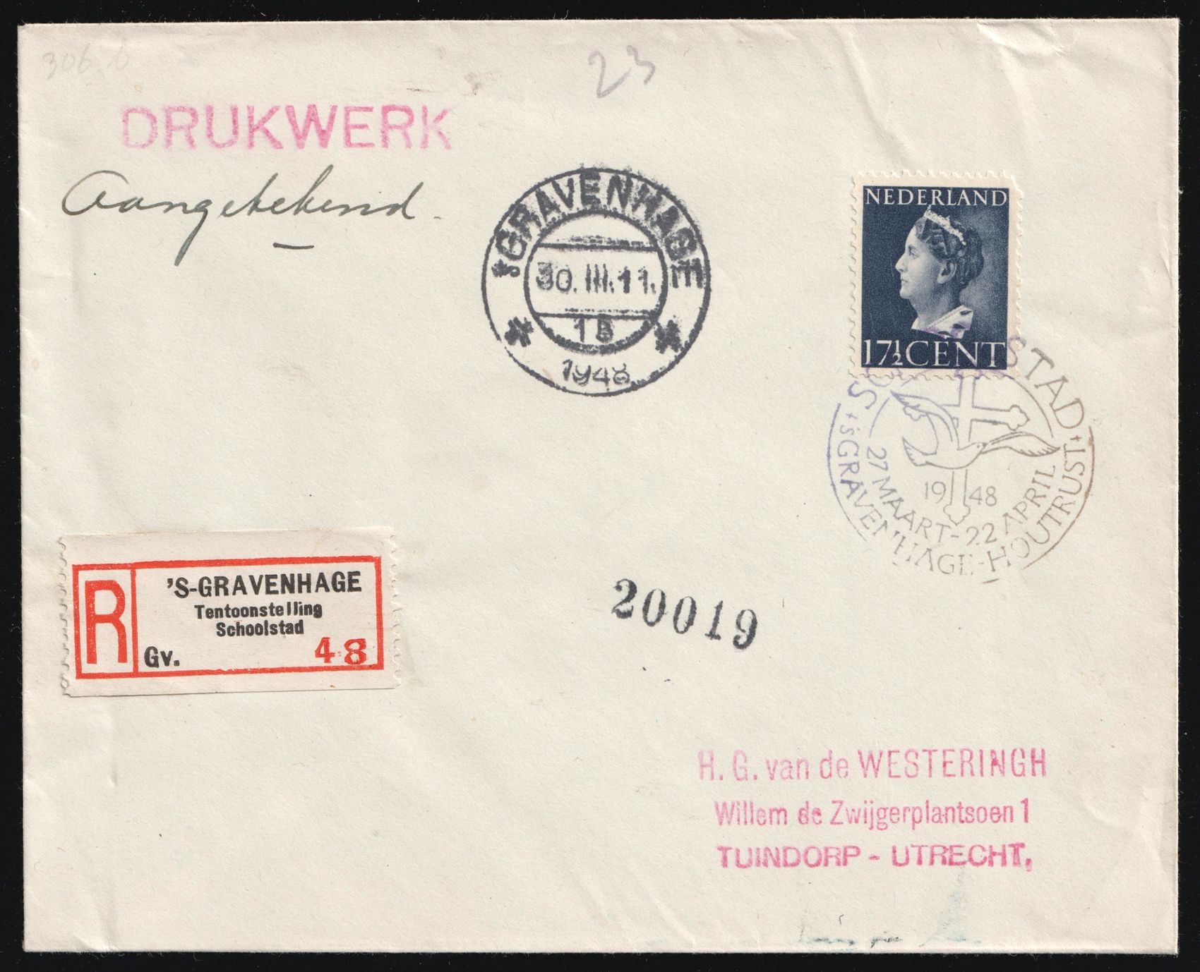 1948 (30 Mar) Netherlands, 'School City Exhibition', Registered Cover locally addressed in Hague franked with