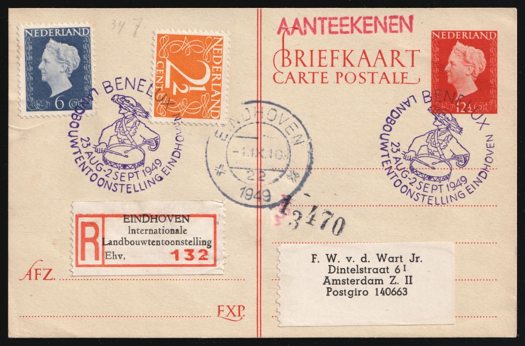 1949 (1 Sep) Netherlands, 'International Agricultural Exhibition', 12.5c Registered Postal Stationery Postcard