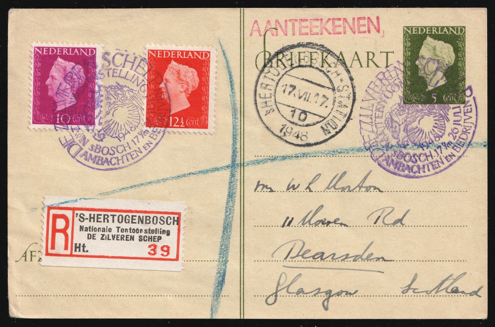 1948 (17 Jul) Netherlands, 'National Exhibition 'The Silver Shovel'', 5c Registered Postal Stationery Postcard