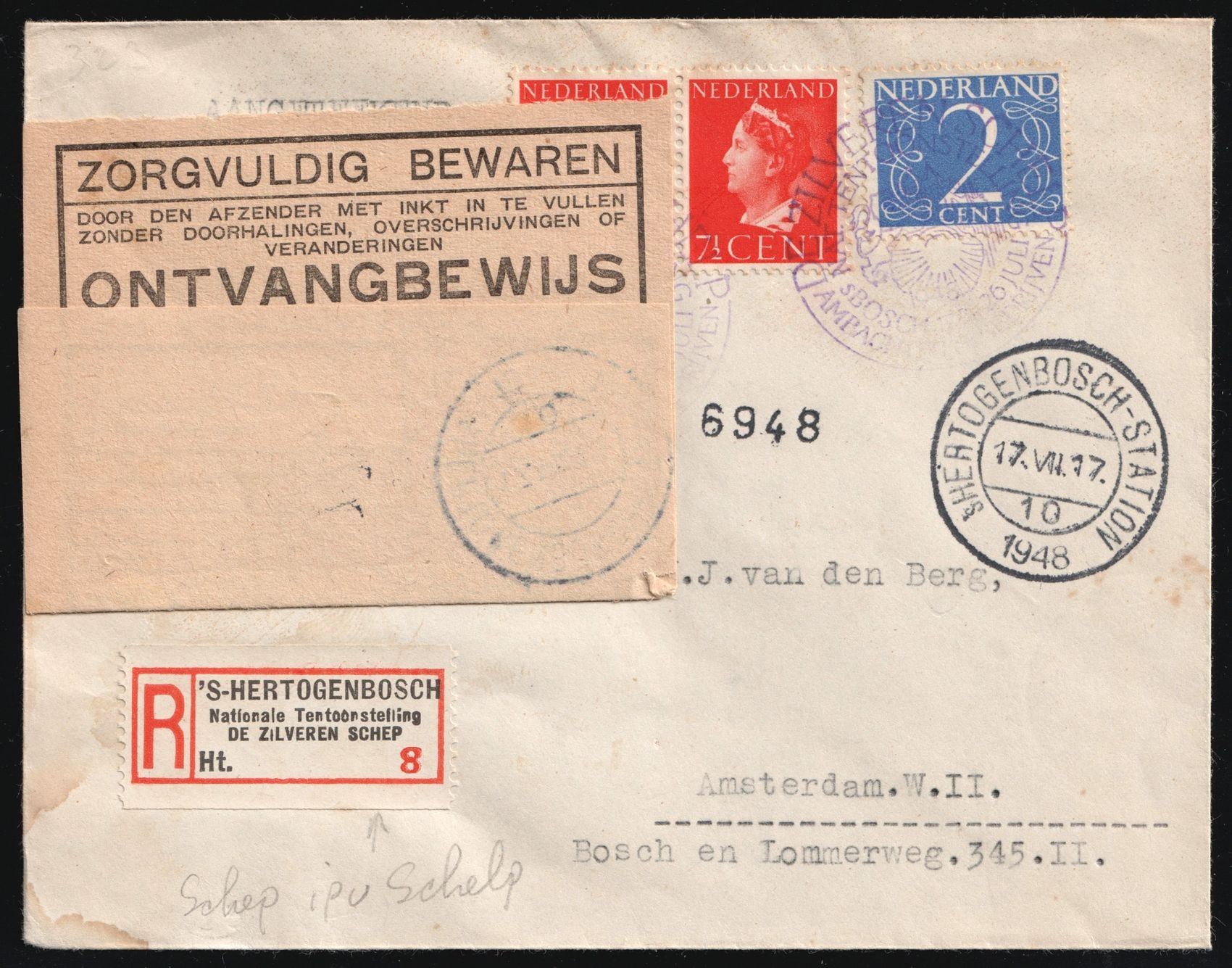 1948 (17 Jul) Netherlands, 'National Exhibition 'The Silver Shovel'', Registered Cover from Den Bosch to