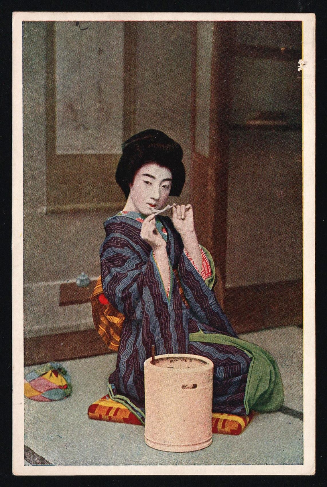5686 image1919-20 Czechoslovak Legion in Siberia, Japanese picture postcard from Vladivostok, franked with 1r legion blue and red stamp tied by straight two-lines legion handstamp (Image 1) (Image 2)