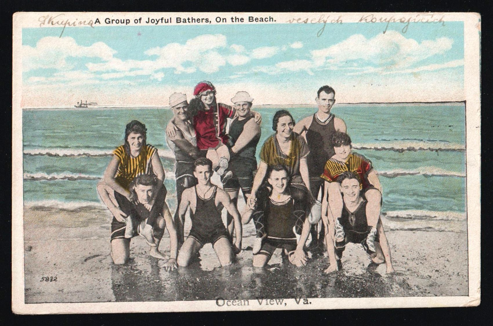 5687 image1919-20 Czechoslovak Legion in Siberia, Picture postcard franked with 1r legion blue and red stamp tied by circular legion handstamp and 8th Company handstamp alongisde, Ocean View Virginia Bathers Photo Card (Image 1) (Image 2)