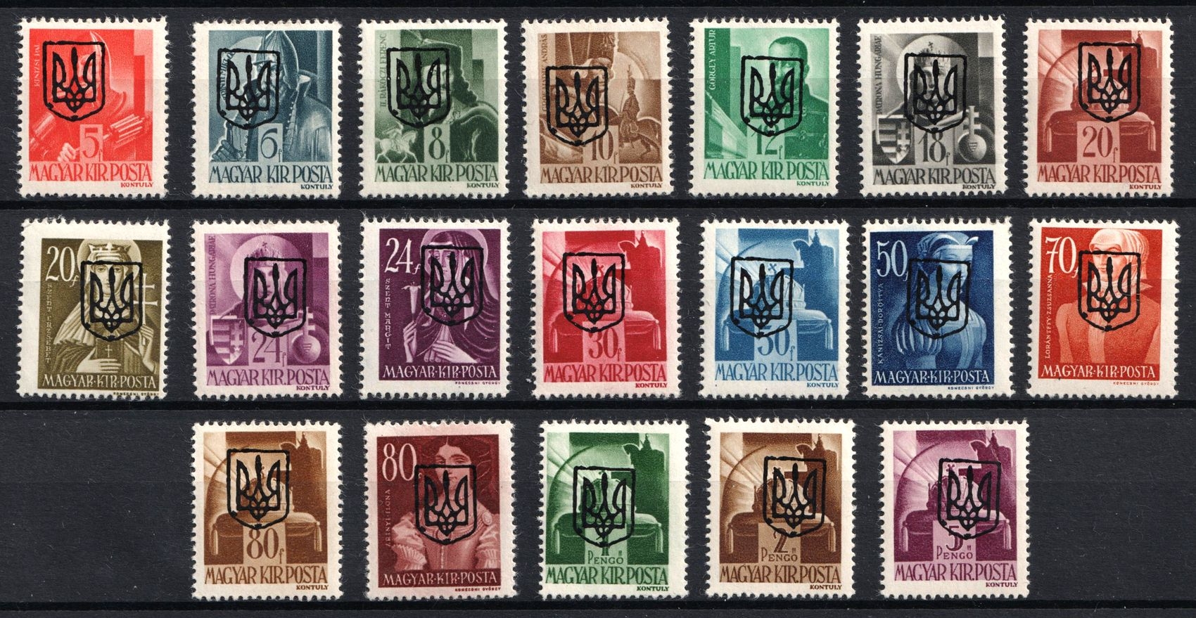 1945 Carpatho-Ukraine, Margins. MNH, Steiden 82 A - 84 A, CV $50 (Image 1)