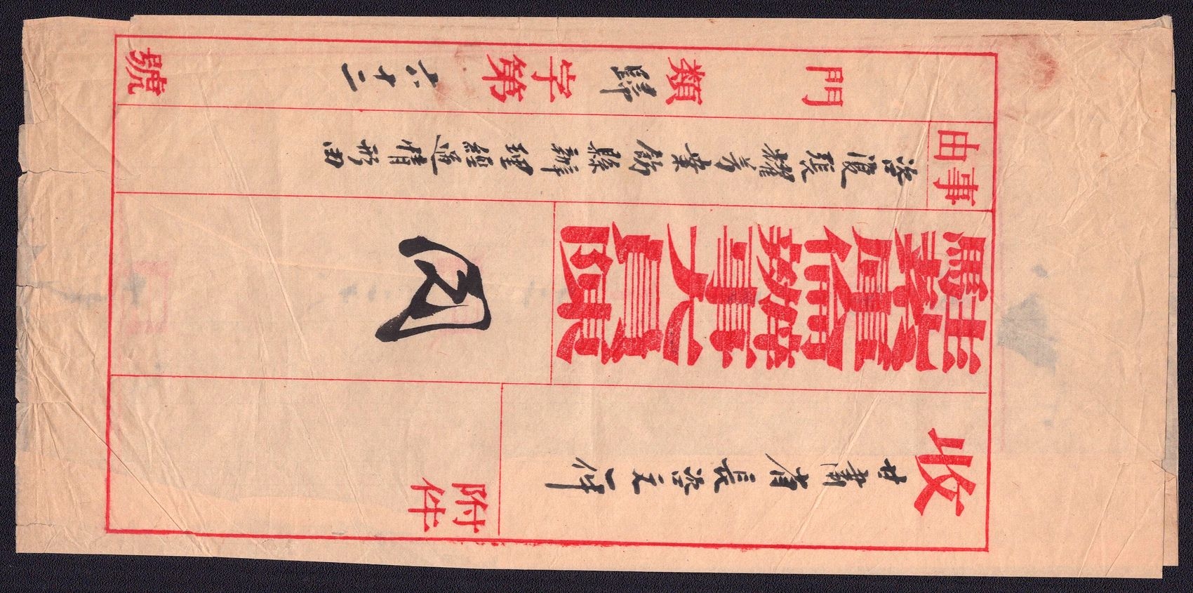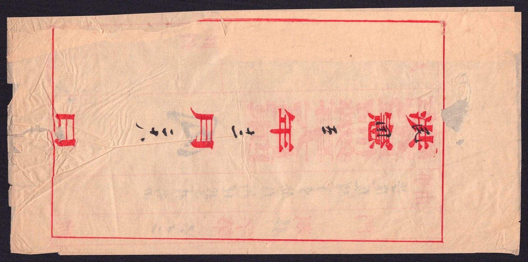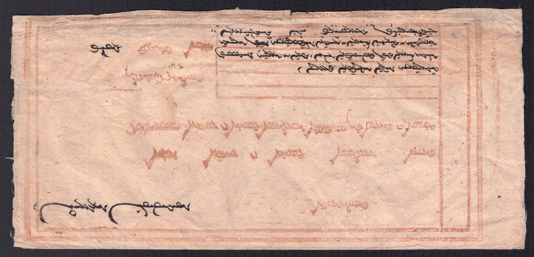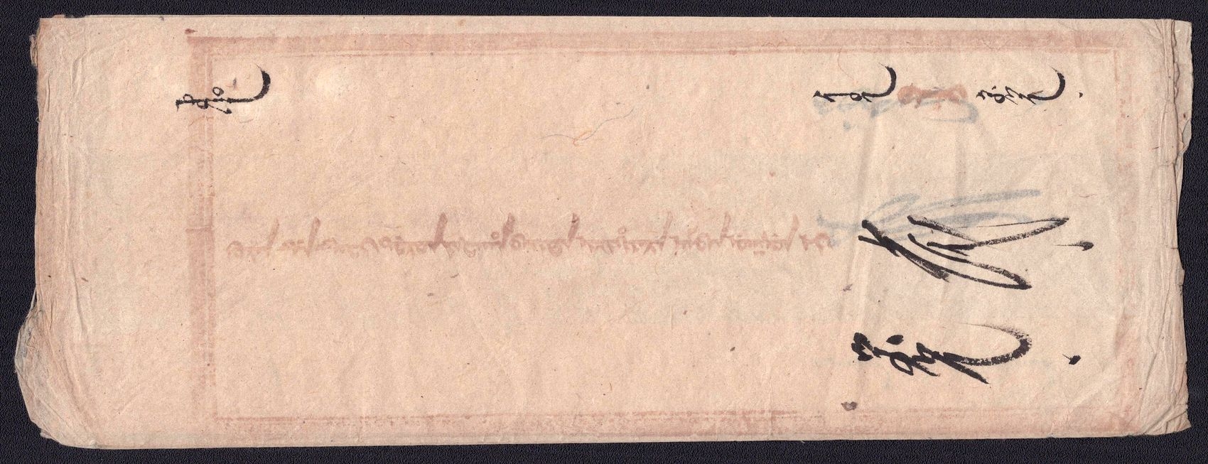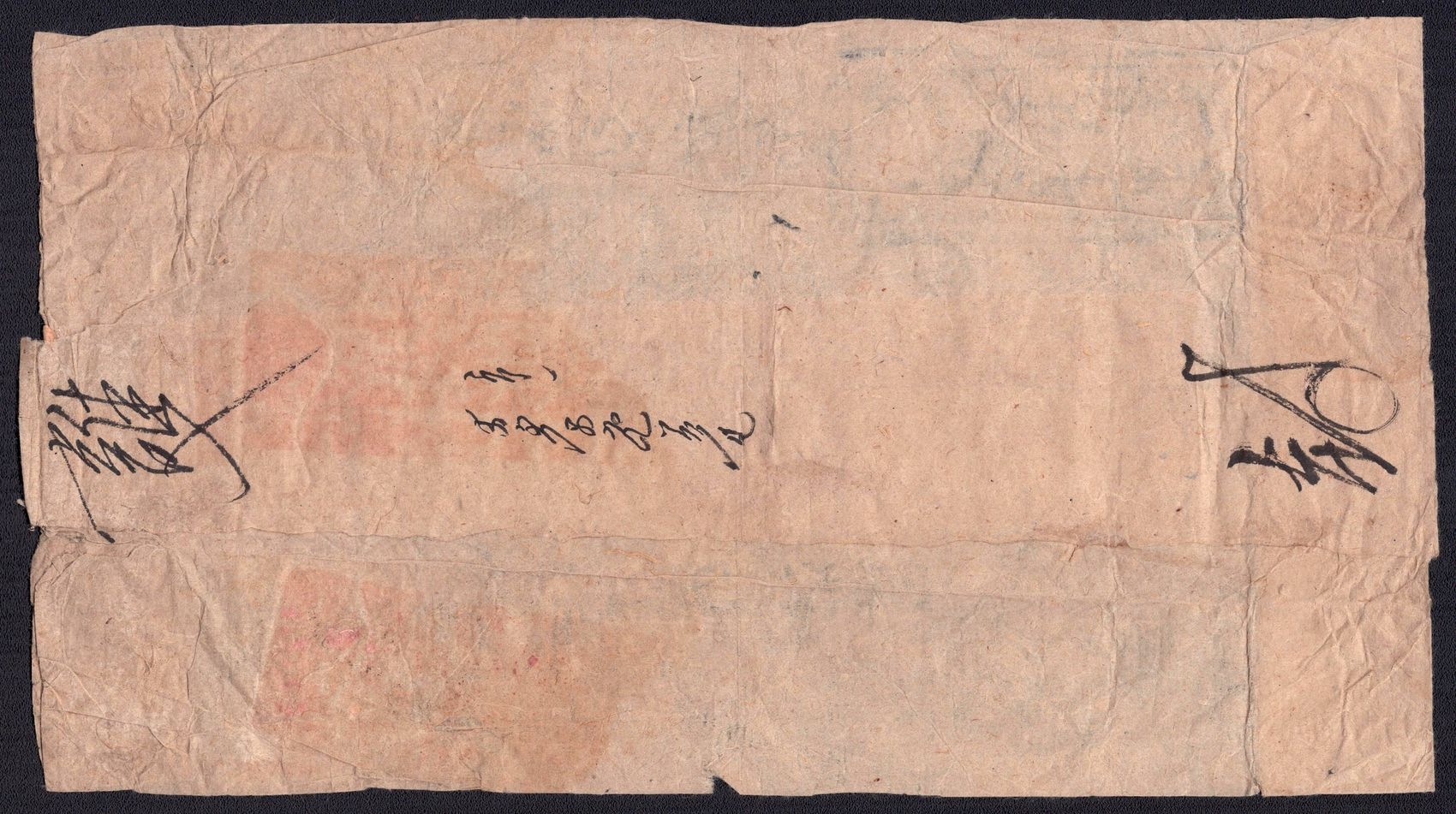 977 image1890-1920 Mongolia, Chinese Government Mail, Military Courier, An Uliyasutai folded wrapper sent from ex military chief to the small village of Kamayner. It was hand-carried and delivered ca. 1890's. It is addressed in both Chinese and Mongul (Image 1) (Image 2) (Image 3)
