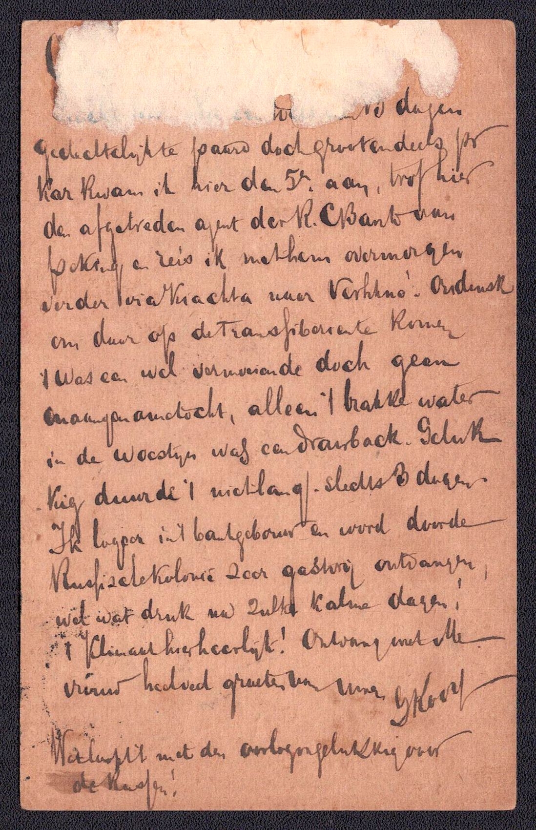 983 image1909 Russian Offices Abroad 7k 'KITAI' Stationery cover from Russian post office in Urga (Mongolia) to Haarlem (Holland), additional franking with 3k, 'A.44' boxed hs on back side (Image 1) (Image 2)