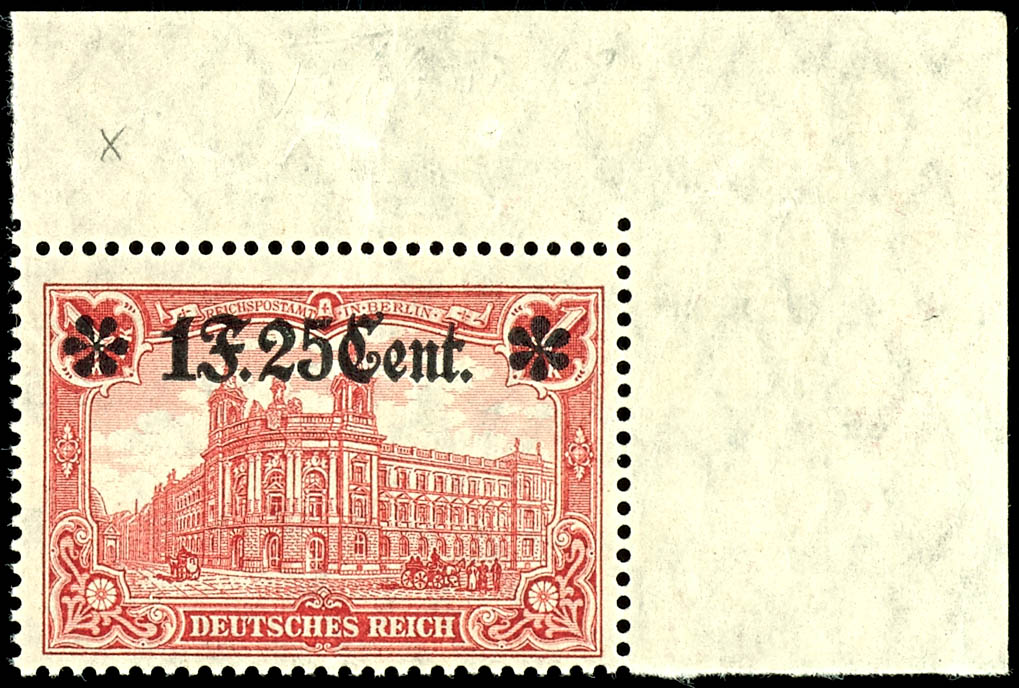 1 F. 25 cent on 1 Mark, stamp from right margin of sheet mint never hinged, very fine, Michel 150.- (11IB) 1 F.25 Cent auf 1 Mark, Marke vom rechten Bogenrand postfrisch, tadellose Erhaltung, Mi. 150.-