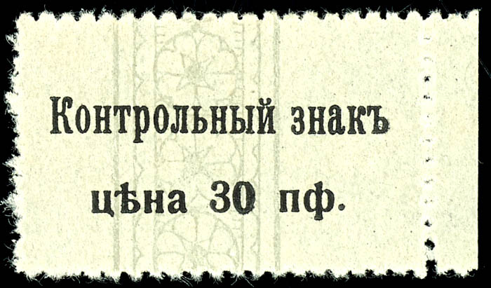 20 pfennigs Germania dark violet blue with violet blue overprint \LIBAU\ in type II, used \German army postal service * 168 a -8.1.19\, perforation at the upper margin irregular / shortened, issued only 1.500 piece, expertized