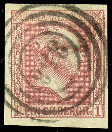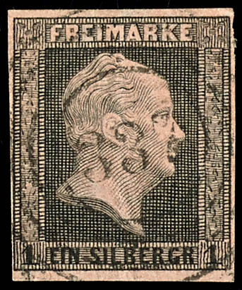 \353\ - Duelmen (administrativ district of Muenster), clear on 1 silver penny black on rose, very fine (2a) \353\ - Dülmen (Reg.-Bez. Münster), klar auf 1 Silbergroschen schwarz auf rosa, tadellose Erhaltung