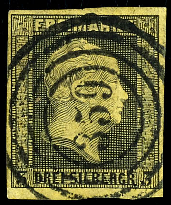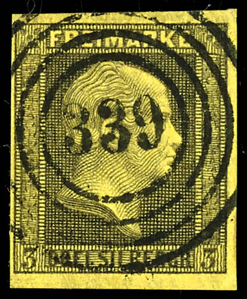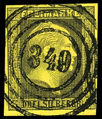 \333\ - Domnau (administrativ district of Koenigsberg), clear on 3 silver penny black on yellow, very fine (4a) \333\ - Domnau (Reg.-Bez. Königsberg), klar auf 3 Silbergroschen schwarz auf gelb, tadellose Erhaltung