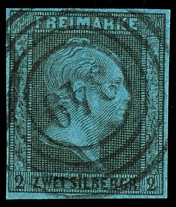 \345\ - Driesen (administrativ district of Frankfurt), clear on 2 silver penny black on blue, very fine (3) \345\ - Driesen (Reg.-Bez. Frankfurt), klar auf 2 Silbergroschen schwarz auf blau, tadellose Erhaltung