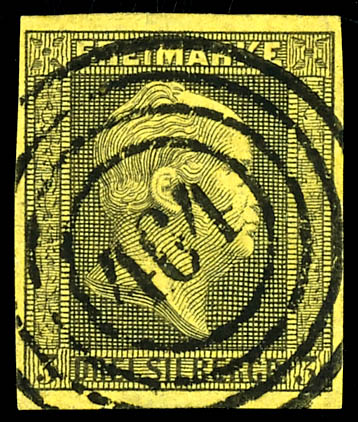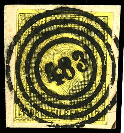 \483\ - Gescher (administrativ district of Muenster), clear on 3 silver penny black on yellow, very fine (4a) \483\ - Gescher (Reg.-Bez. Münster), klar auf 3 Silbergroschen schwarz auf gelb, tadellose Erhaltung