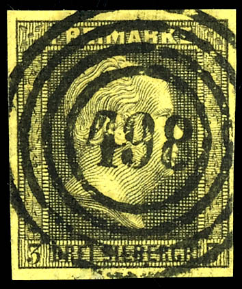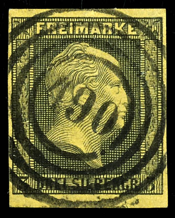 \464\ - Garz (administrativ district of Stettin), clear on 3 silver penny black on yellow, very fine (4a) \464\ - Garz (Reg.-Bez. Stettin), klar auf 3 Silbergroschen schwarz auf gelb, tadellose Erhaltung