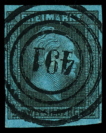 \491\ - Glatz (administrativ district of Wroclaw), clear on 2 silver penny black on blue, very fine (3) \491\ - Glatz (Reg.-Bez. Breslau), klar auf 2 Silbergroschen schwarz auf blau, tadellose Erhaltung