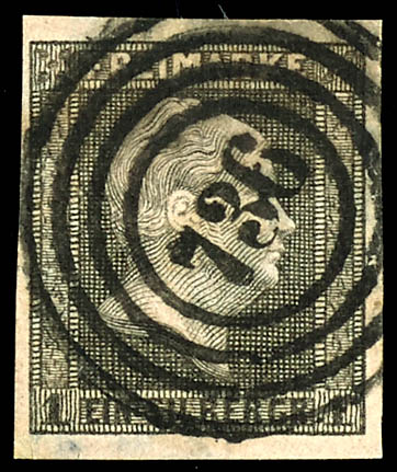 \742\ - Koenigsberg (administrativ district of Koenigsberg), clear on 1 silver penny black on rose, very fine (2a) \742\ - Königsberg (Reg.-Bez. Königsberg), klar auf 1 Silbergroschen schwarz auf rosa, tadellose Erhaltung