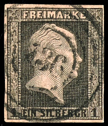 \752\ - costs (administrativ district of Posen), clear on 1 silver penny black on rose, very fine (2a) \752\ - Kosten (Reg.-Bez. Posen), klar auf 1 Silbergroschen schwarz auf rosa, tadellose Erhaltung