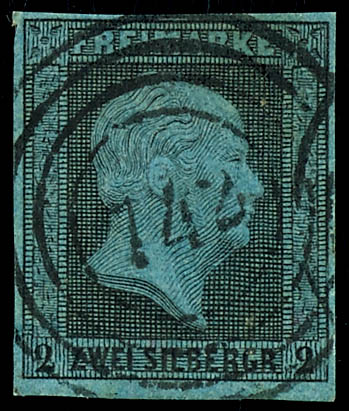 \742\ - Koenigsberg (administrativ district of Koenigsberg), clear on 2 silver penny black on blue, very fine (3) \742\ - Königsberg (Reg.-Bez. Königsberg), klar auf 2 Silbergroschen schwarz auf blau, tadellose Erhaltung
