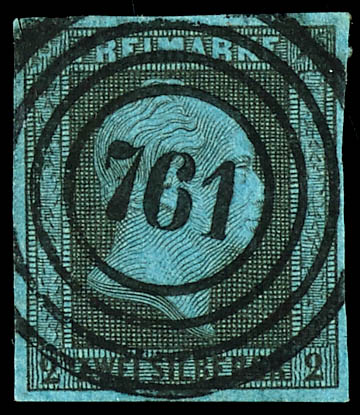 \761\ - Kriescht (administrativ district of Frankfurt), clear on 2 silver penny black on blue, very fine (3) \761\ - Kriescht (Reg.-Bez. Frankfurt), klar auf 2 Silbergroschen schwarz auf blau, tadellose Erhaltung