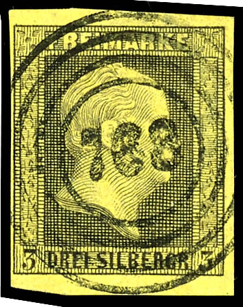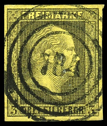 \784\ - Laehn (administrativ district of Legnica), clear on 3 silver penny black on yellow, very fine (4a) \784\ - Lähn (Reg.-Bez. Liegnitz), klar auf 3 Silbergroschen schwarz auf gelb, tadellose Erhaltung