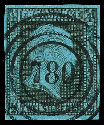 \780\ - Labischin (administrativ district of Bromberg), clear on 2 silver penny black on blue, very fine (3) \780\ - Labischin (Reg.-Bez. Bromberg), klar auf 2 Silbergroschen schwarz auf blau, tadellose Erhaltung