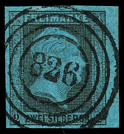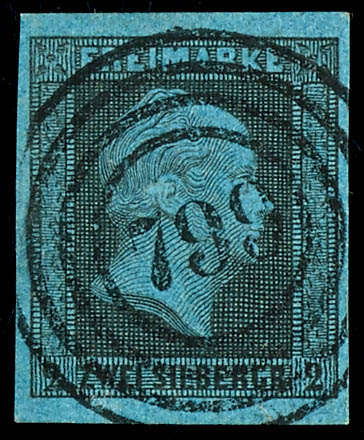 \826\ - Lengerich (administrativ district of Muenster), clear on 2 silver penny black on blue, very fine (3) \826\ - Lengerich (Reg.-Bez. Münster), klar auf 2 Silbergroschen schwarz auf blau, tadellose Erhaltung