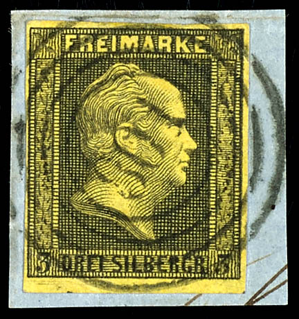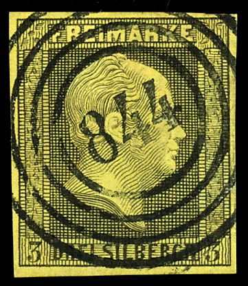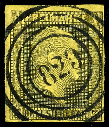 \801\ - Langensalza (administrativ district of Erford), clear on 3 silver penny black on yellow, very fine (4a) \801\ - Langensalza (Reg.-Bez. Erfurt), klar auf 3 Silbergroschen schwarz auf gelb, tadellose Erhaltung