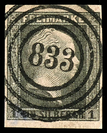 \829\ - Lennep (administrativ district of Duesseldorf), clear on 3 silver penny black on yellow, very fine (4a) \829\ - Lennep (Reg.-Bez. Düsseldorf), klar auf 3 Silbergroschen schwarz auf gelb, tadellose Erhaltung