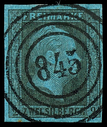 \847\ - Liebenwerda (administrativ district of Merseburg), clear on 2 silver penny black on blue, very fine (3) \847\ - Liebenwerda (Reg.-Bez. Merseburg), klar auf 2 Silbergroschen schwarz auf blau, tadellose Erhaltung