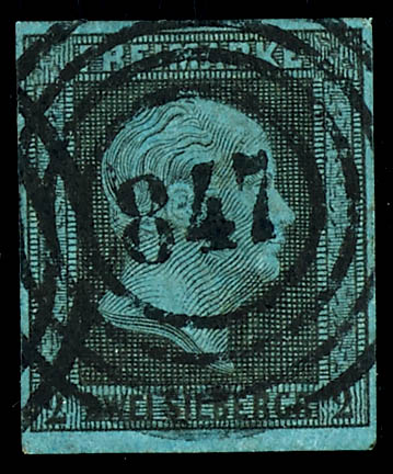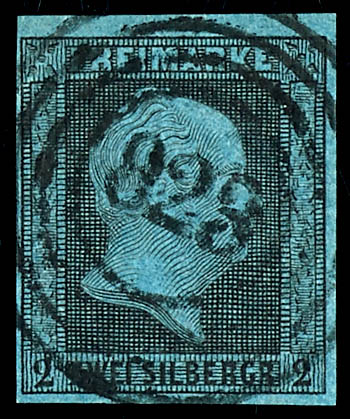 \845\ - Liebenthal (administrativ district of Legnica), clear on 2 silver penny black on blue, very fine (3) \845\ - Liebenthal (Reg.-Bez. Liegnitz), klar auf 2 Silbergroschen schwarz auf blau, tadellose Erhaltung