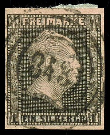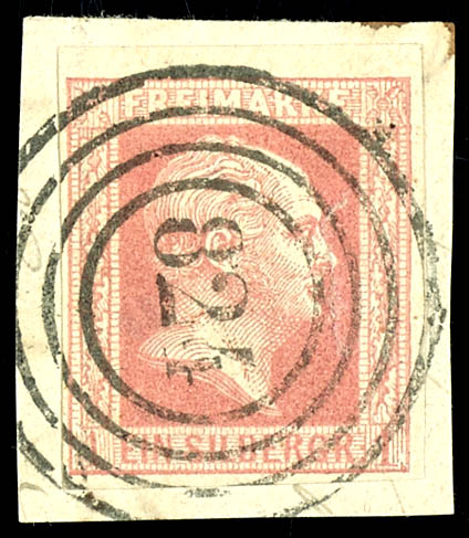 \800\ - Langenfeld (administrativ district of Duesseldorf), S.O.T.N on full margins outstanding quality 1 silver penny black on rose, expertized Flemming (2a) \800\ - Langenfeld (Reg.-Bez. Düsseldorf), klar und zentrisch
