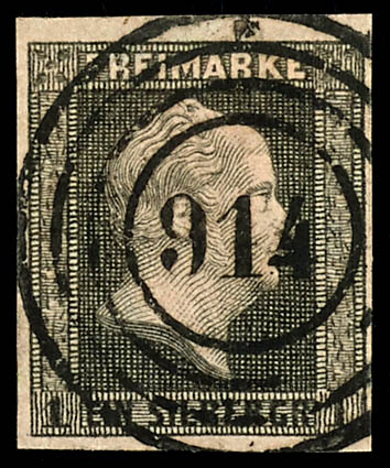 \914\ - Mansfeld (administrativ district of Merseburg), clear on 1 silver penny black on rose, very fine (2a) \914\ - Mansfeld (Reg.-Bez. Merseburg), klar auf 1 Silbergroschen schwarz auf rosa, tadellose Erhaltung
