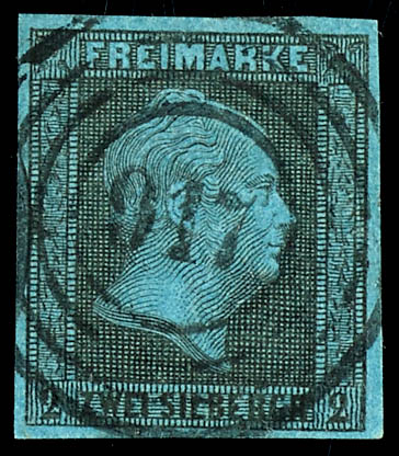 \907\ - Magdeburg (SPA number 7) (administrativ district of Magdeburg), clear on 2 silver penny black on blue, very fine (3) \907\ - Magdeburg (SPA-Nr.7) (Reg.-Bez. Magdeburg), klar auf 2 Silbergroschen schwarz auf blau,
