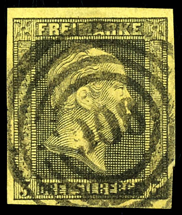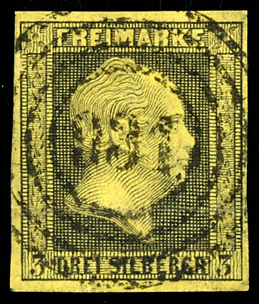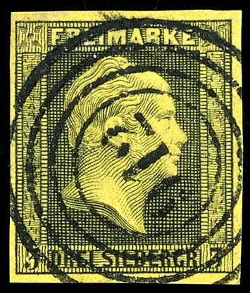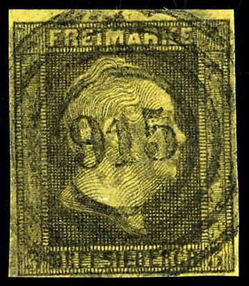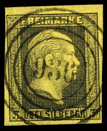 \906\ - Magdeburg (administrativ district of Magdeburg), clear on 3 silver penny black on yellow, very fine (4a) \906\ - Magdeburg (Reg.-Bez. Magdeburg), klar auf 3 Silbergroschen schwarz auf gelb, tadellose Erhaltung