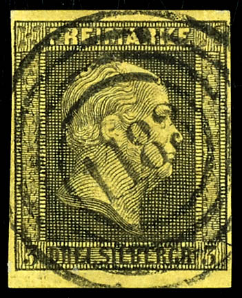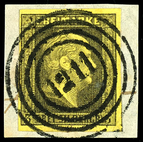\1200\ - Ratibor (administrativ district of Opole), clear on 3 silver penny black on yellow, very fine (4a) \1200\ - Ratibor (Reg.-Bez. Oppeln), klar auf 3 Silbergroschen schwarz auf gelb, tadellose Erhaltung