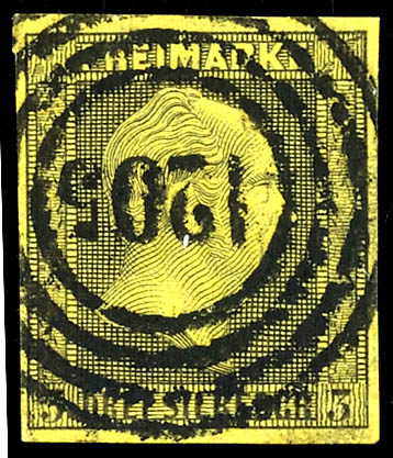 \1214\ - Rehme (administrativ district of Minden), clear on 3 silver penny black on yellow, very fine (4a) \1214\ - Rehme (Reg.-Bez. Minden), klar auf 3 Silbergroschen schwarz auf gelb, tadellose Erhaltung