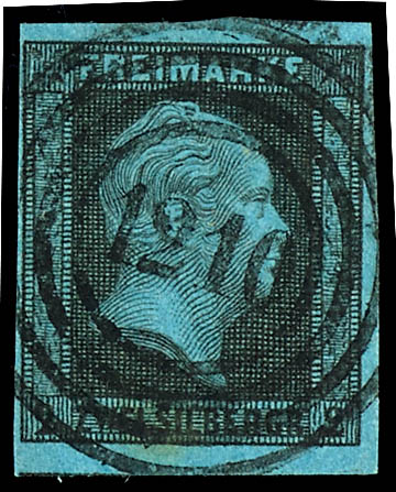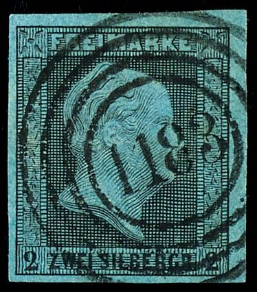 \1183\ - Quedlinburg (administrativ district of Magdeburg), clear on 2 silver penny black on blue, very fine (3) \1183\ - Quedlinburg (Reg.-Bez. Magdeburg), klar auf 2 Silbergroschen schwarz auf blau, tadellose Erhaltung