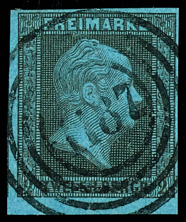 \1214\ - Rehme (administrativ district of Minden), clear on 2 silver penny black on blue, very fine (3) \1214\ - Rehme (Reg.-Bez. Minden), klar auf 2 Silbergroschen schwarz auf blau, tadellose Erhaltung