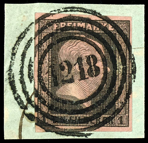 \1218\ - Reichenbach (administrativ district of Wroclaw), clear on 1 silver penny black on rose on piece, very fine (2a) \1218\ - Reichenbach (Reg.-Bez. Breslau), klar auf 1 Silbergroschen schwarz auf rosa auf Briefstück,