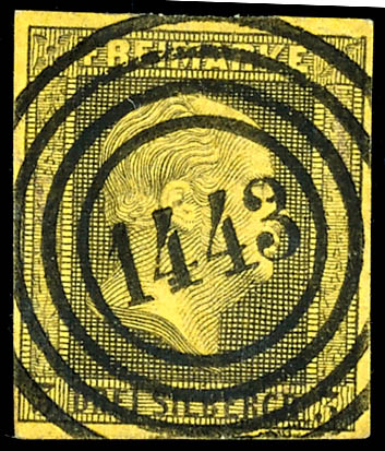 \1443\ - Stolp (administrativ district of Koeslin), clear on 3 silver penny black on yellow, very fine (4a) \1443\ - Stolp (Reg.-Bez. Köslin), klar auf 3 Silbergroschen schwarz auf gelb, tadellose Erhaltung