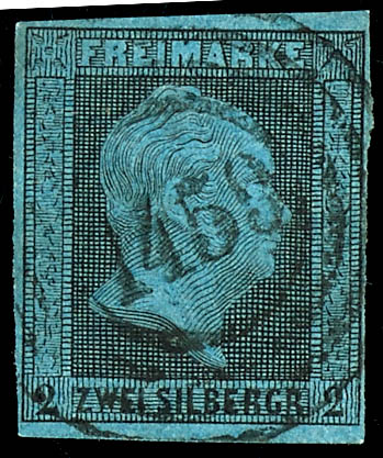 \1459\ - Stromberg (administrativ district of Coblenz), clear on 2 silver penny black on blue, very fine (3) \1459\ - Stromberg (Reg.-Bez. Koblenz), klar auf 2 Silbergroschen schwarz auf blau, tadellose Erhaltung