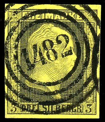 \1482\ - Tarnowitz (administrativ district of Opole), clear on 3 silver penny black on yellow, very fine (4a) \1482\ - Tarnowitz (Reg.-Bez. Oppeln), klar auf 3 Silbergroschen schwarz auf gelb, tadellose Erhaltung