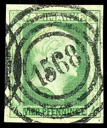 \1568\ - Waldau (administrativ district of Legnica), clear on 4 pennies green, very fine (5a) \1568\ - Waldau (Reg.-Bez. Liegnitz), klar auf 4 Pfennige grün, tadellose Erhaltung