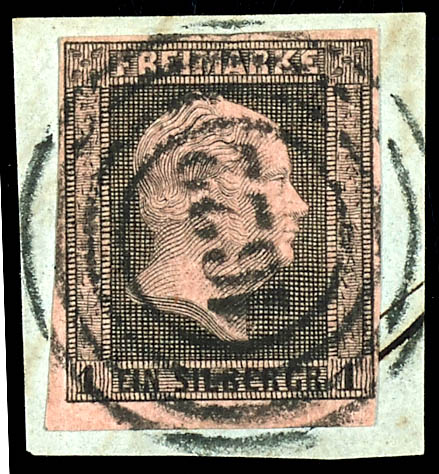 \1567\ - Wald (administrativ district of Duesseldorf), clear on full margins extremely fine copy 1 silver penny black on rose (2a) \1567\ - Wald (Reg.-Bez. Düsseldorf), klar auf vollrandigem Kabinettstück 1 Silbergroschen